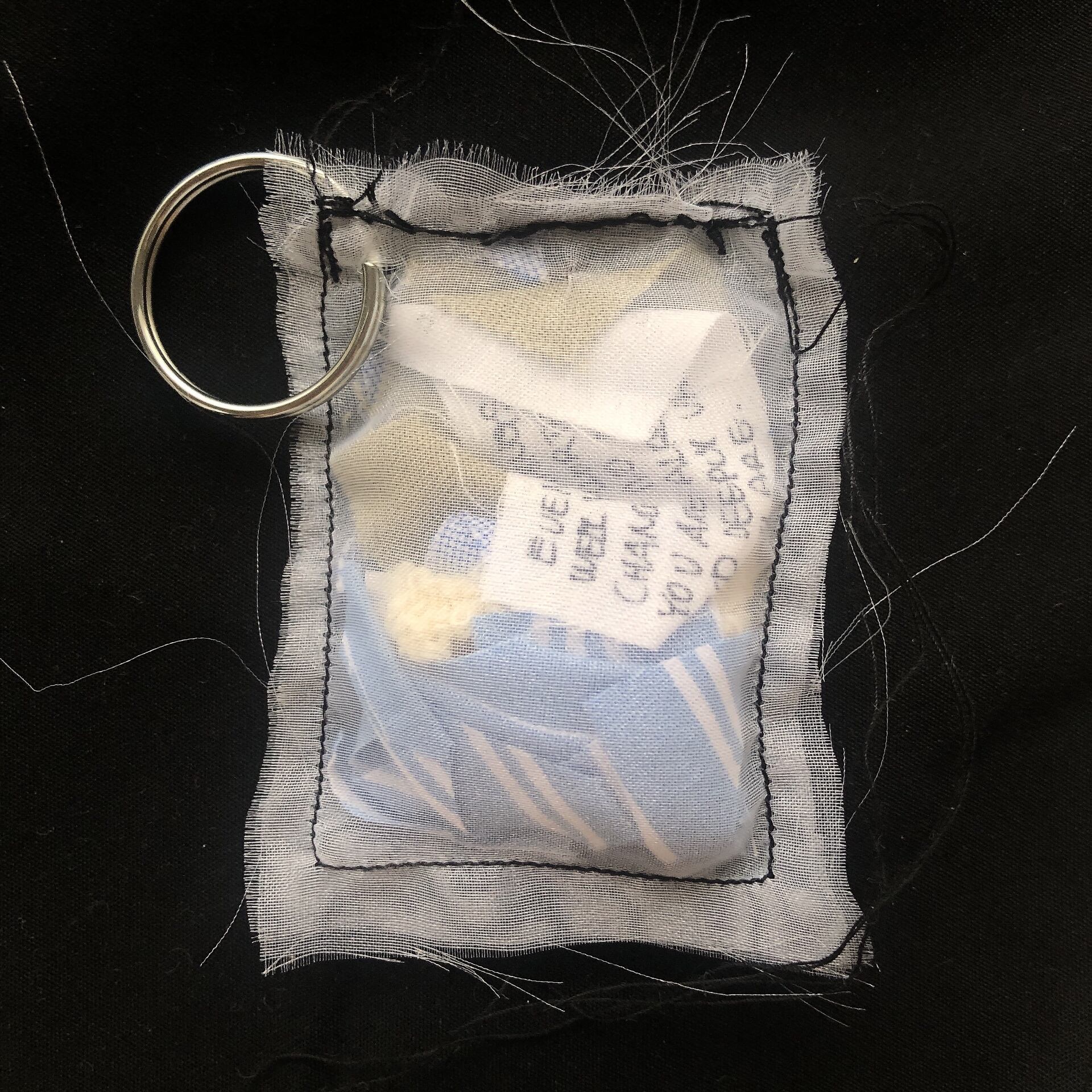 透け感のある生地の中には、服をつくる際に生まれた"切れ端"と、