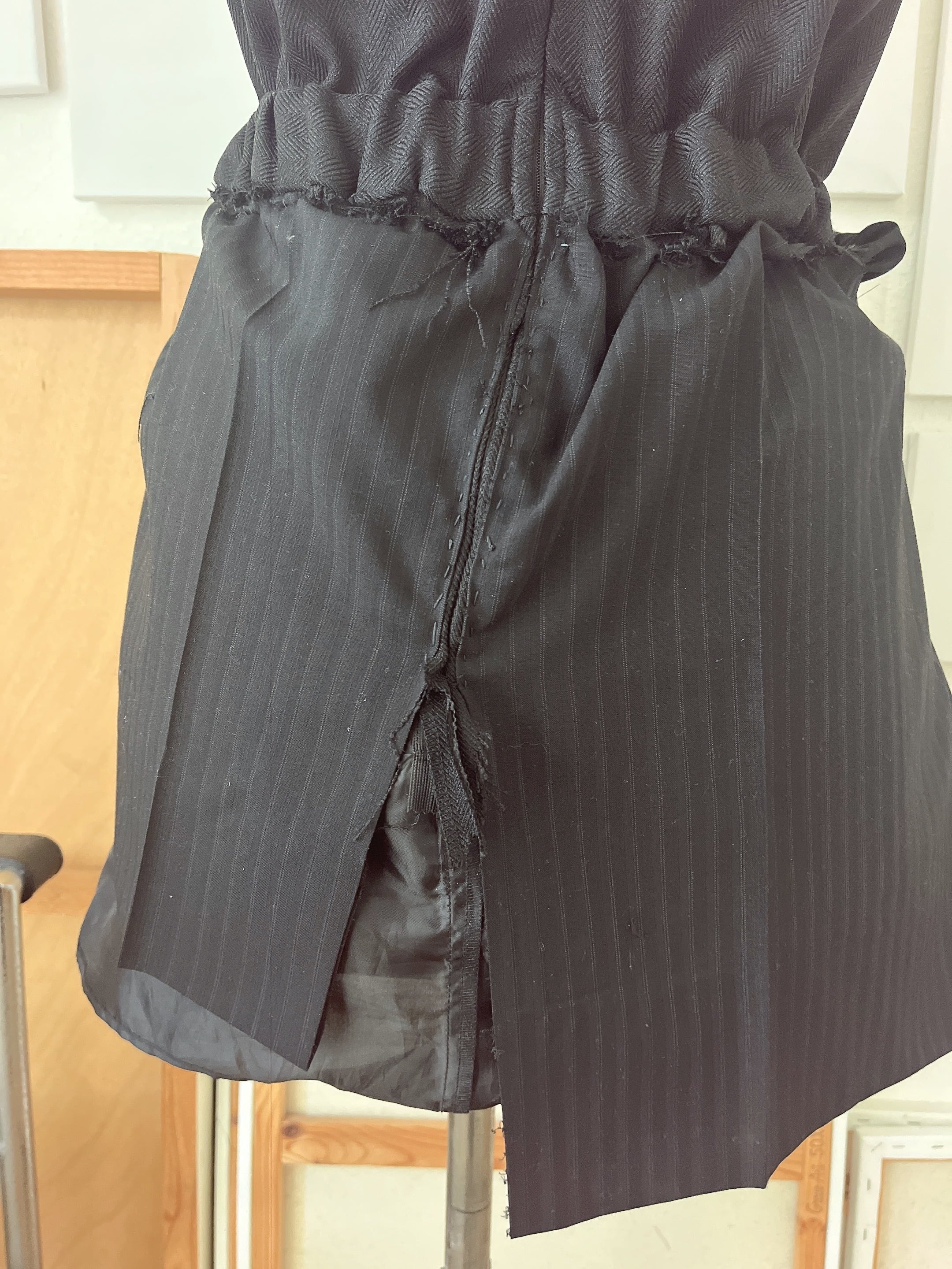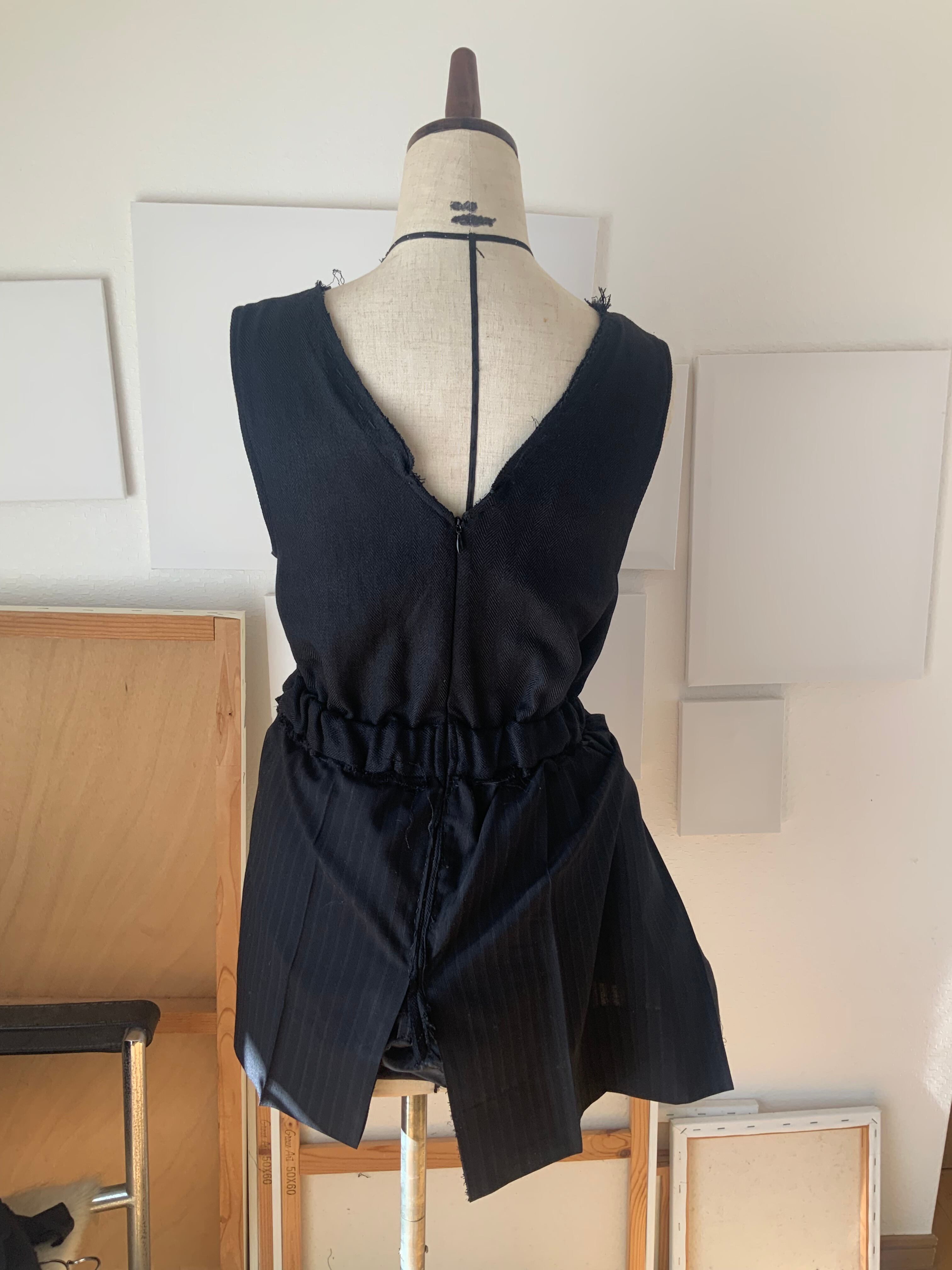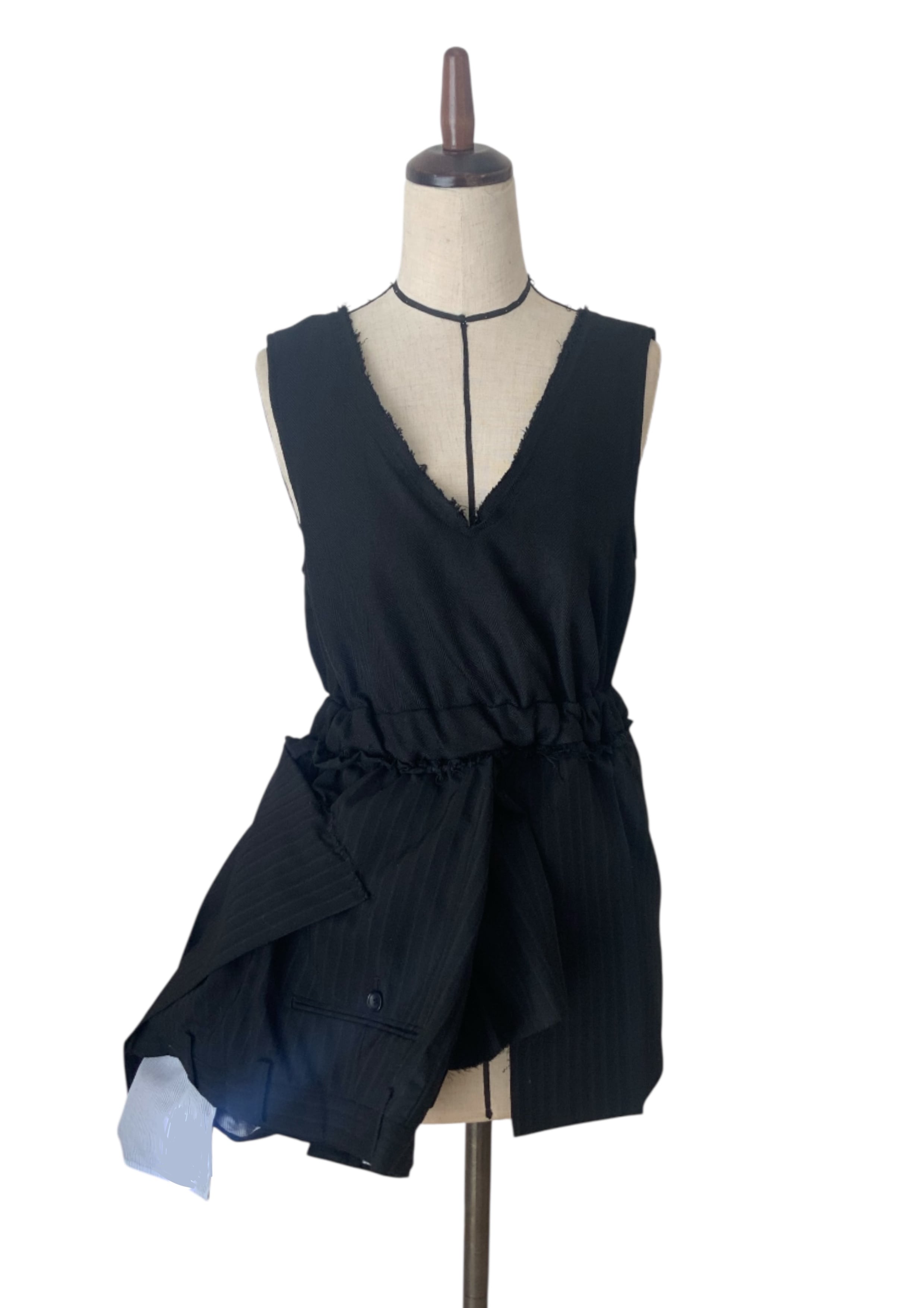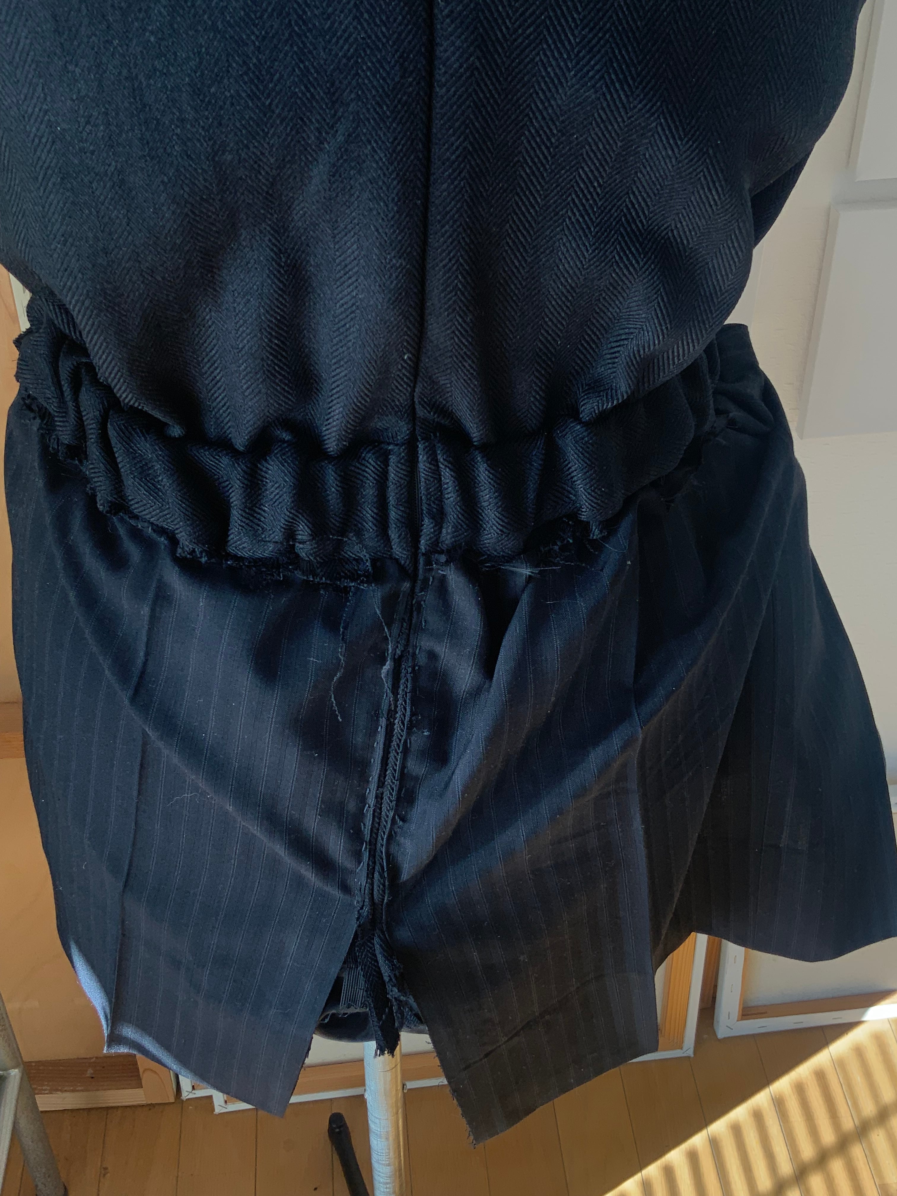 制作には、#0021のワンピースで残った裏地と、スーツパンツの布を用いています。