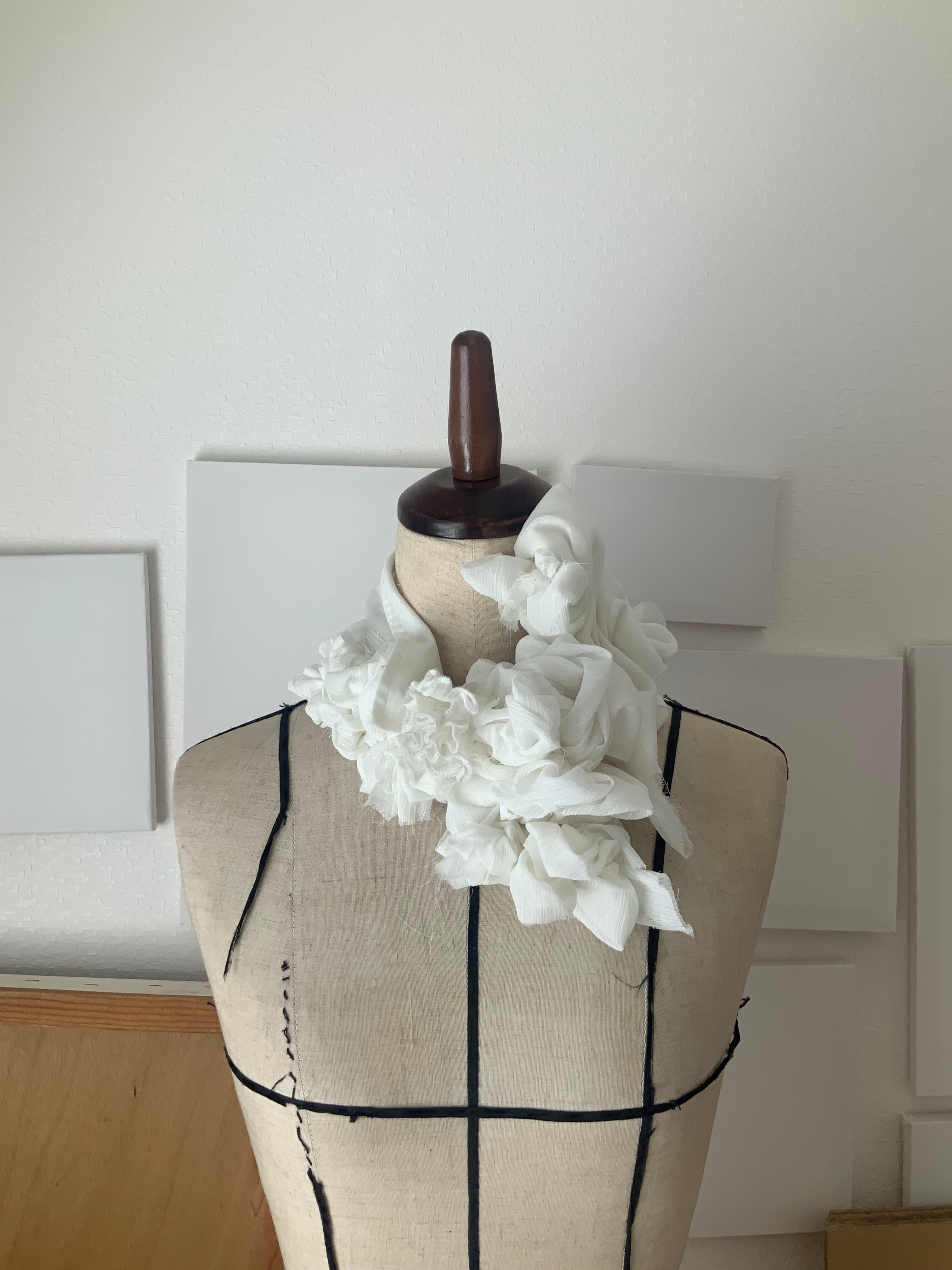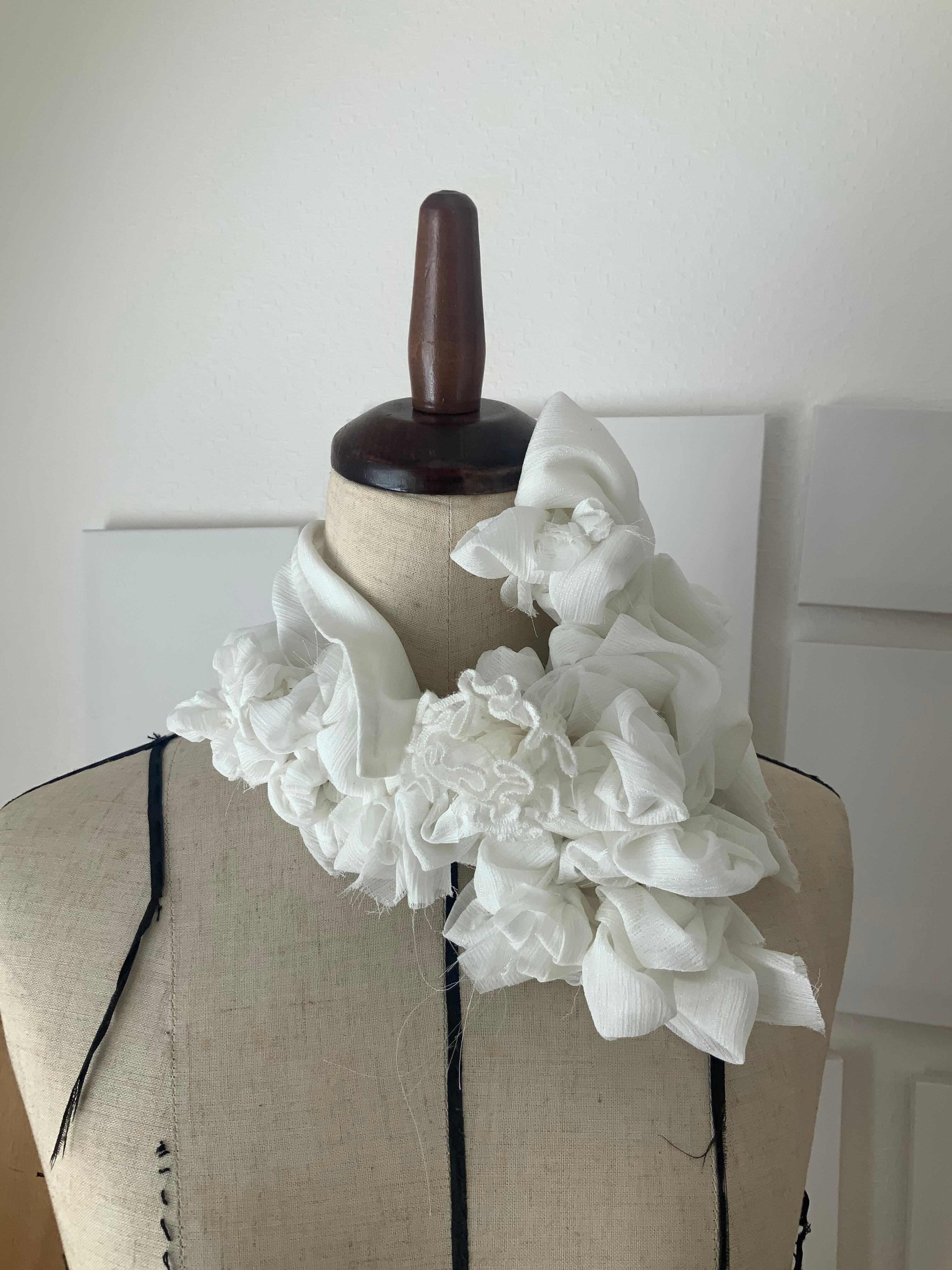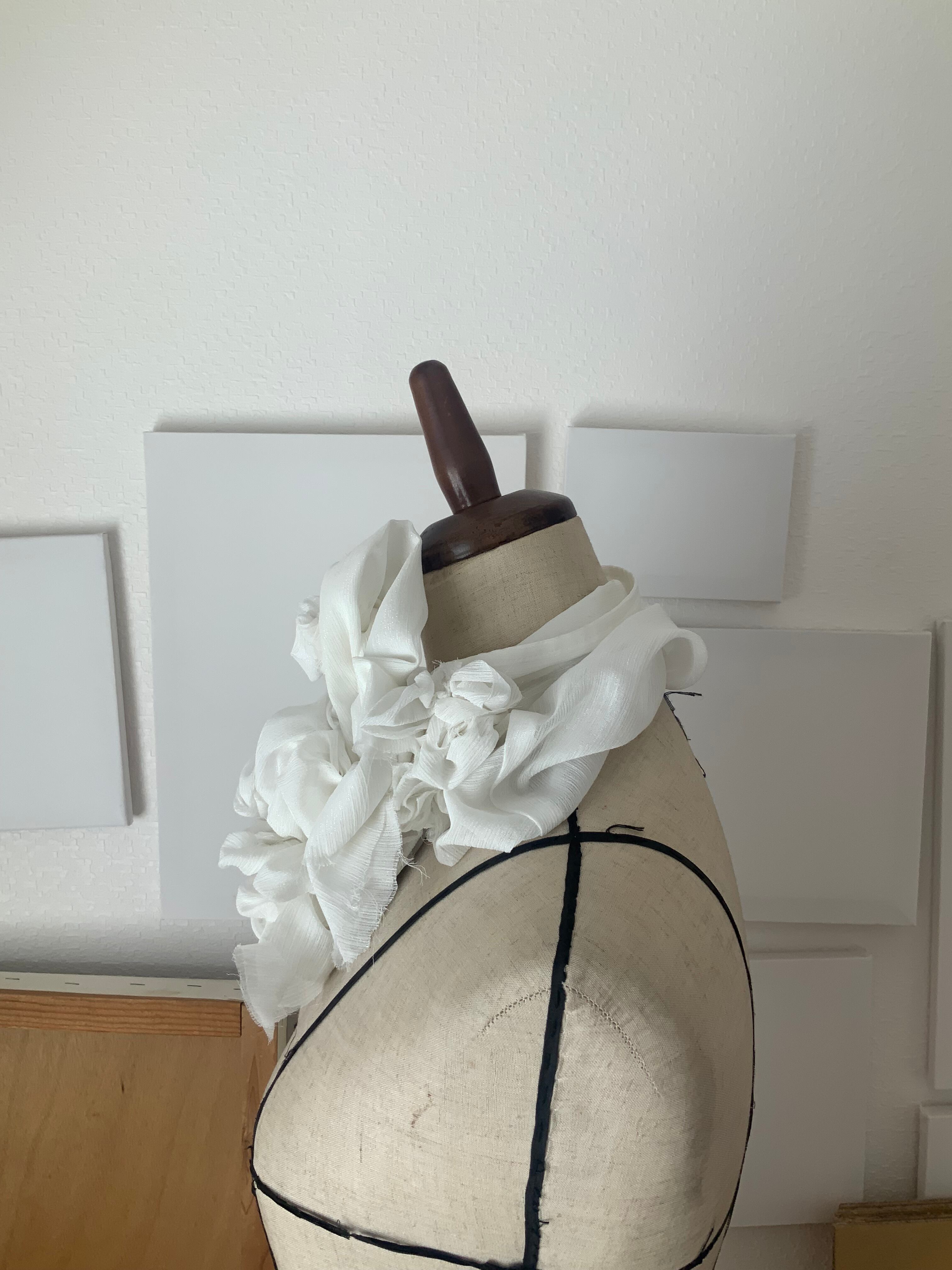 飲み込むためではなく、外へ渡すための場所。1984は、反抗のための襟ではない。失いかけた声を、静かに思い出すためのしるし。美しさとは、強さだろうか。きっと、強さとは、自分を信じる静けさ。この一点もののつけ襟は、何かを誇るためではない。すでに内側にある確信を、首元にそっと可視化するためのものだ。