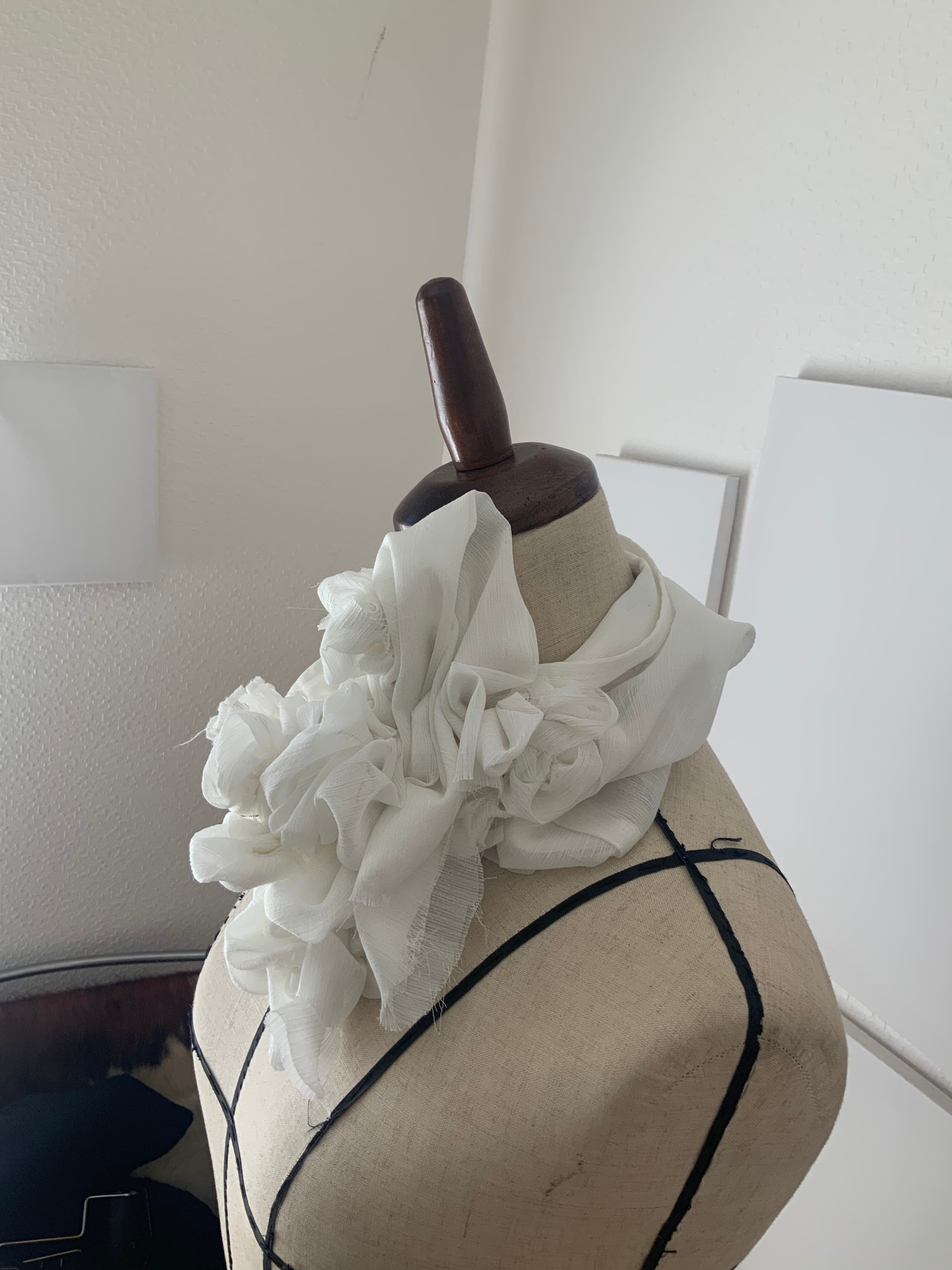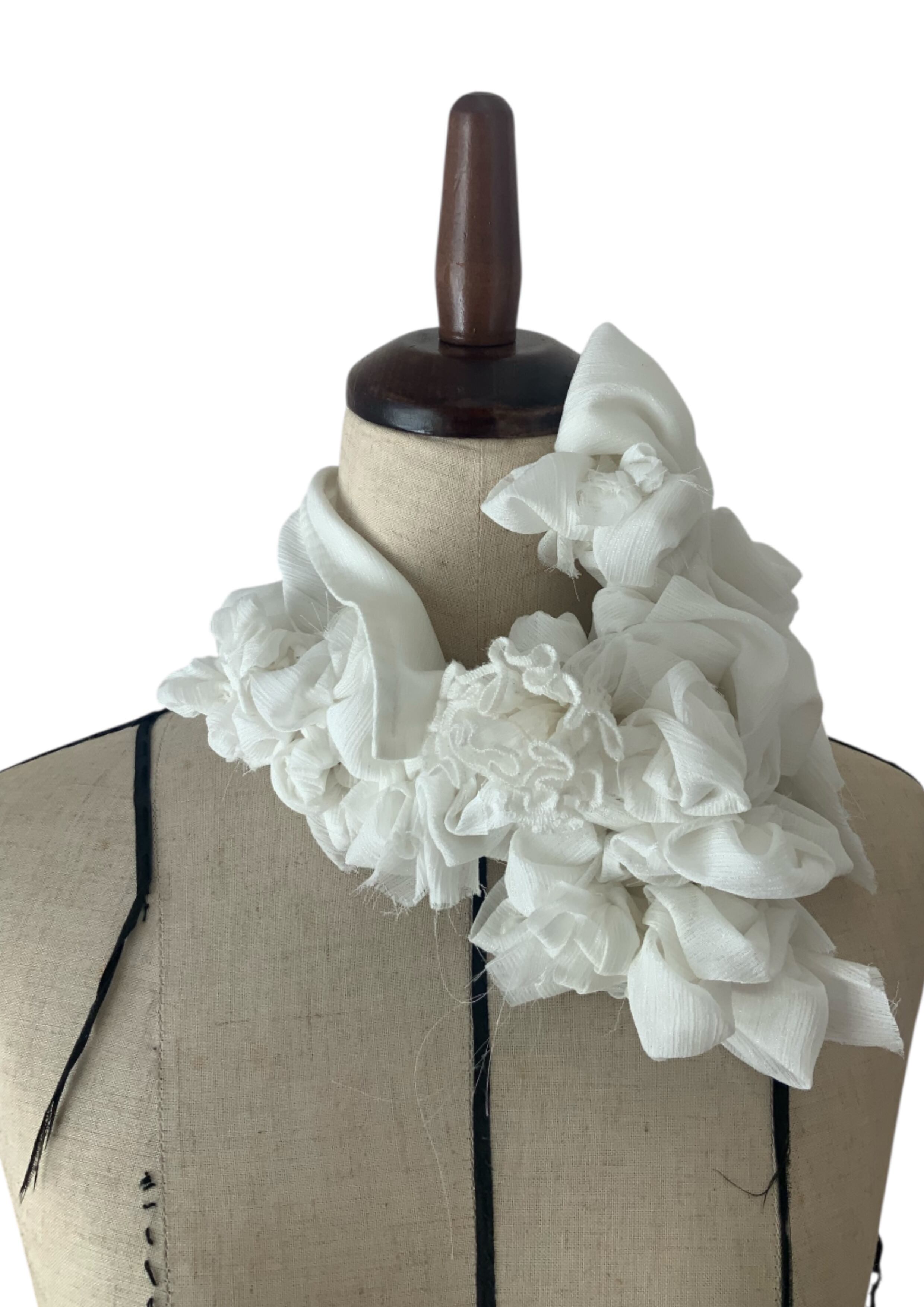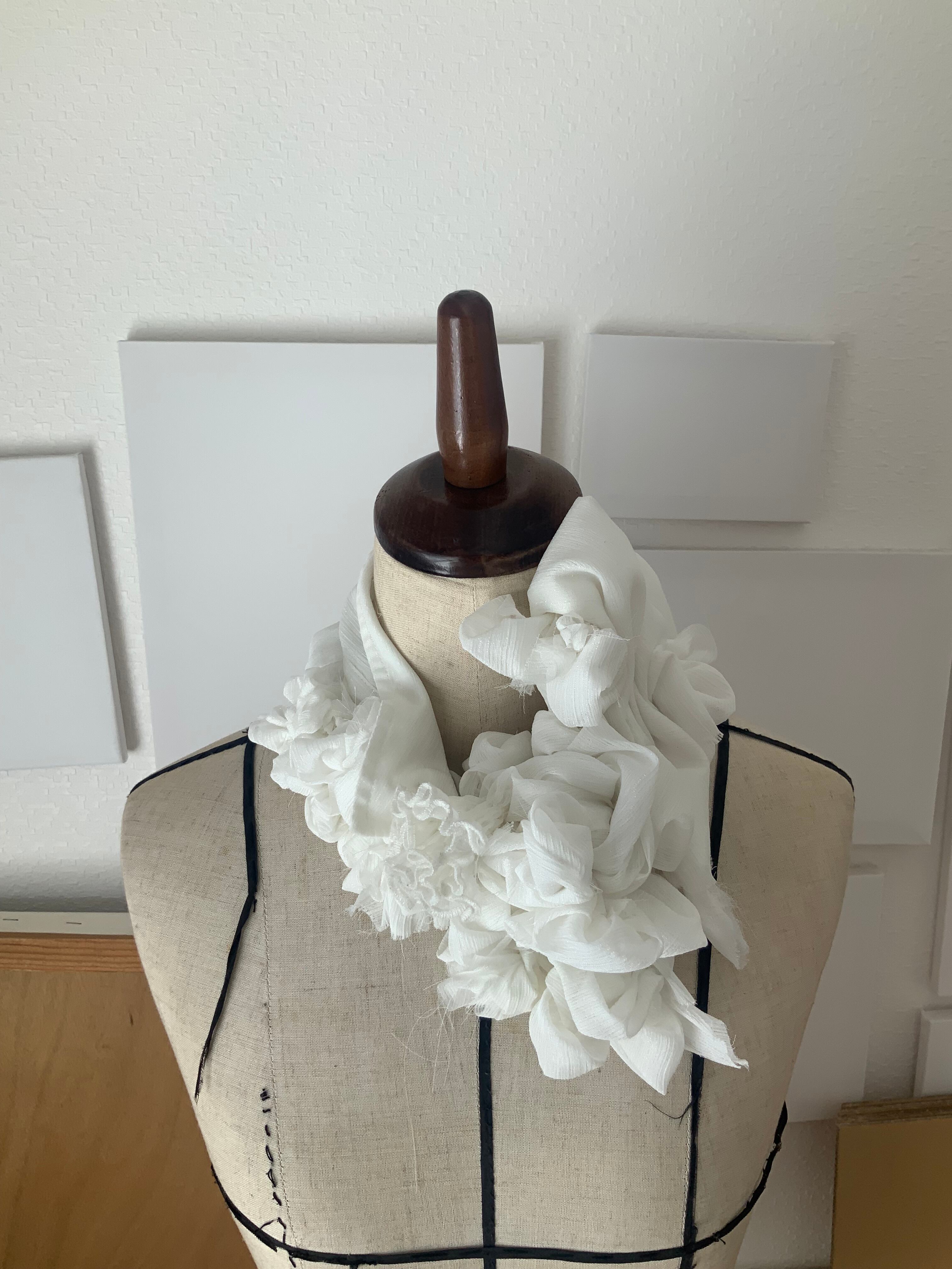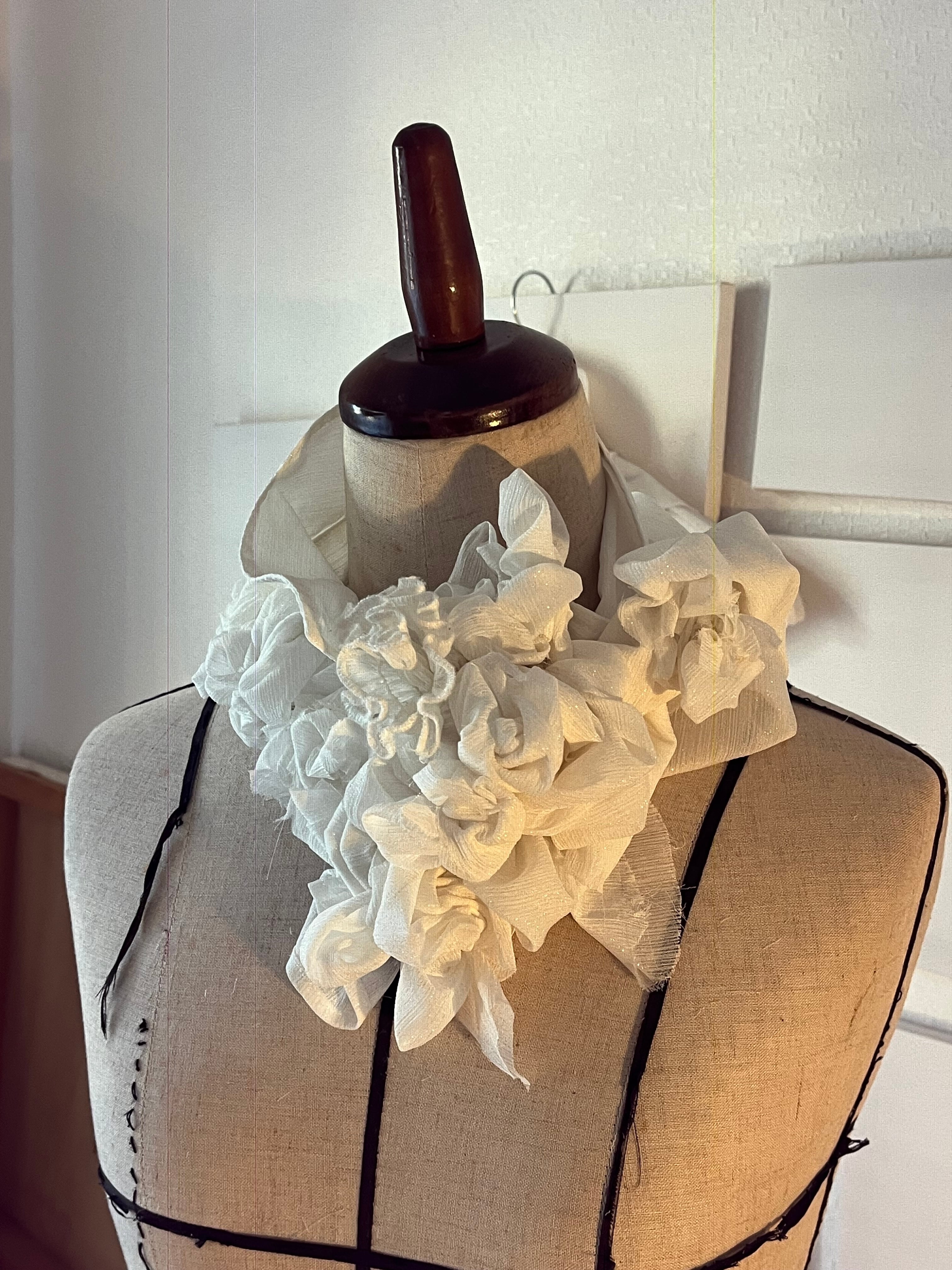 飲み込むためではなく、外へ渡すための場所。1984は、反抗のための襟ではない。失いかけた声を、静かに思い出すためのしるし。美しさとは、強さだろうか。きっと、強さとは、自分を信じる静けさ。この一点もののつけ襟は、何かを誇るためではない。すでに内側にある確信を、首元にそっと可視化するためのものだ。