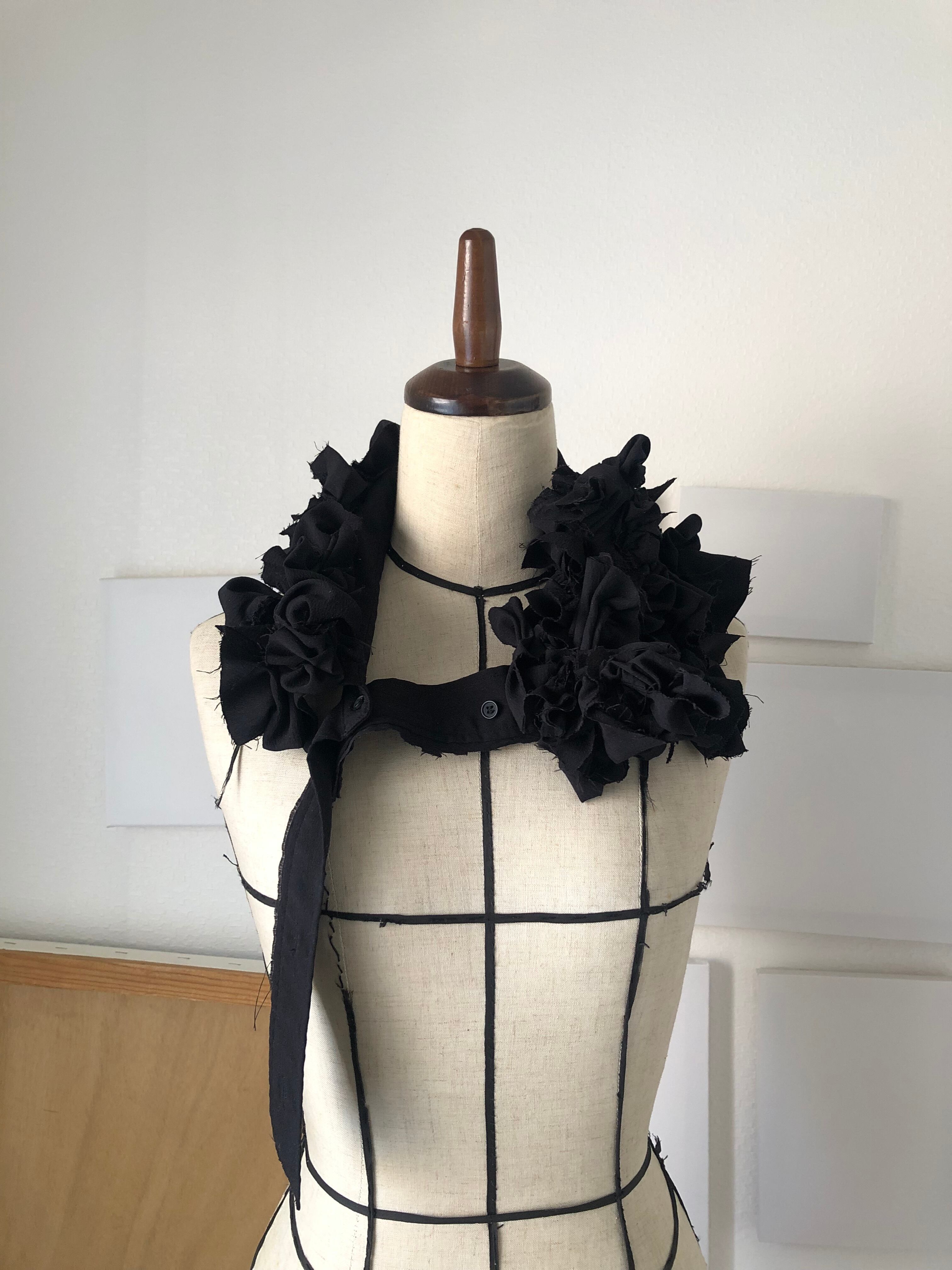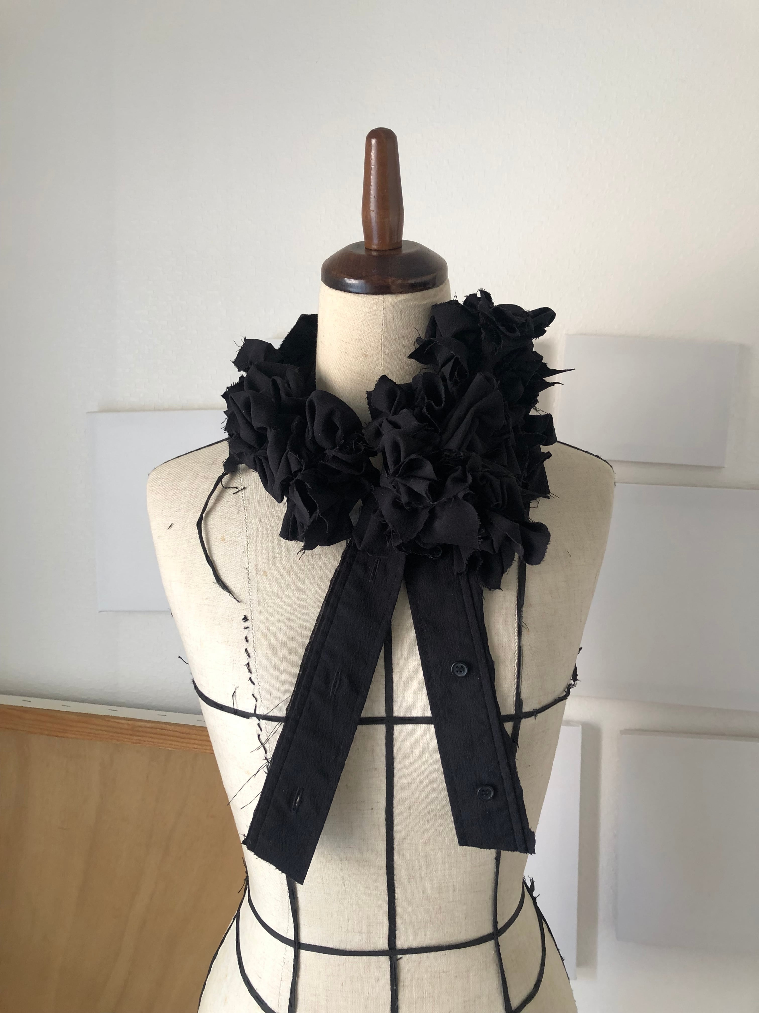 飲み込むためではなく、外へ渡すための場所。1984は、反抗のための襟ではない。失いかけた声を、静かに思い出すためのしるし。美しさとは、強さだろうか。きっと、強さとは、自分を信じる静けさ。この一点もののつけ襟は、何かを誇るためではない。すでに内側にある確信を、首元にそっと可視化するためのものだ。