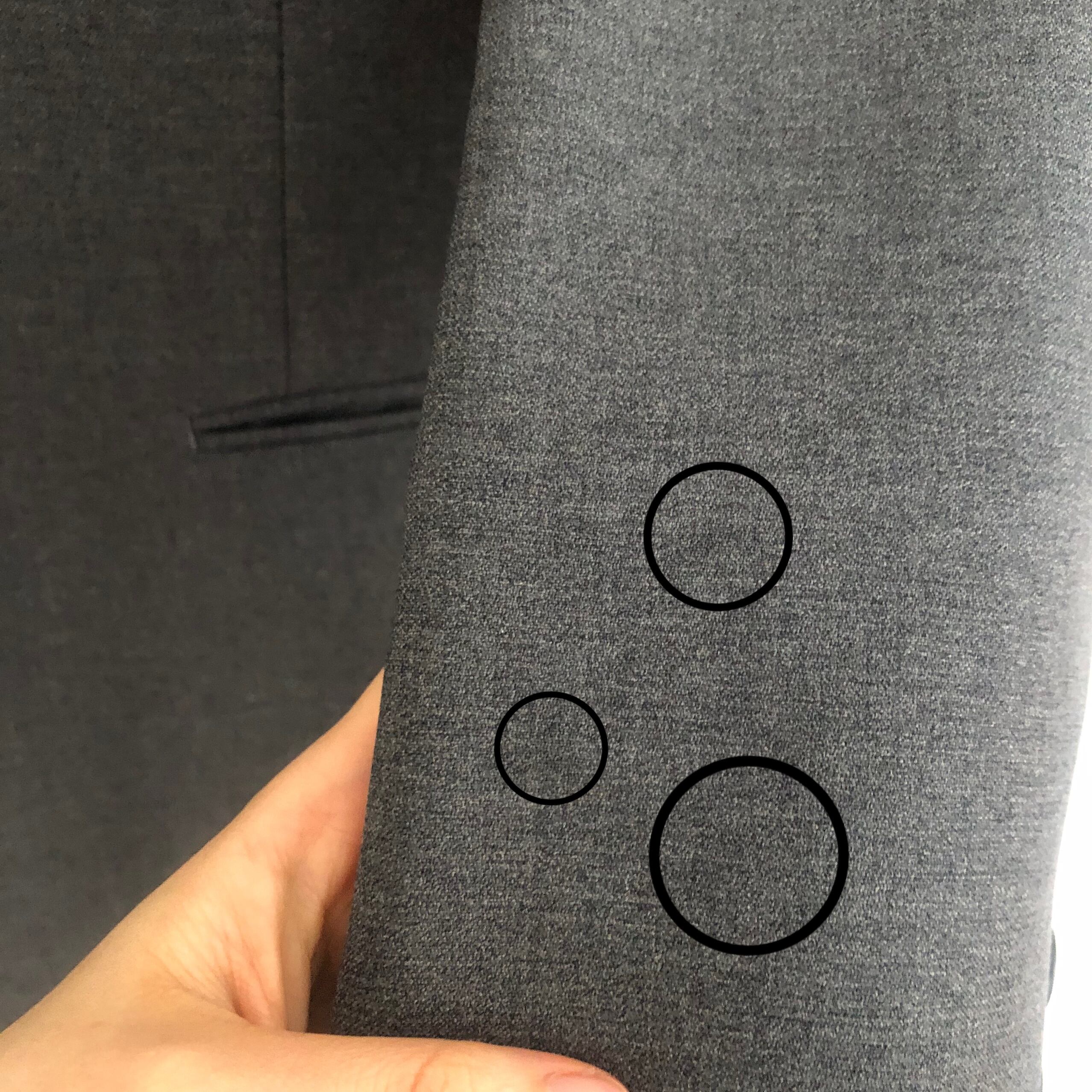 穴:左裾に擦り切れた小さな穴が数箇所あり。画像をご確認ください。
